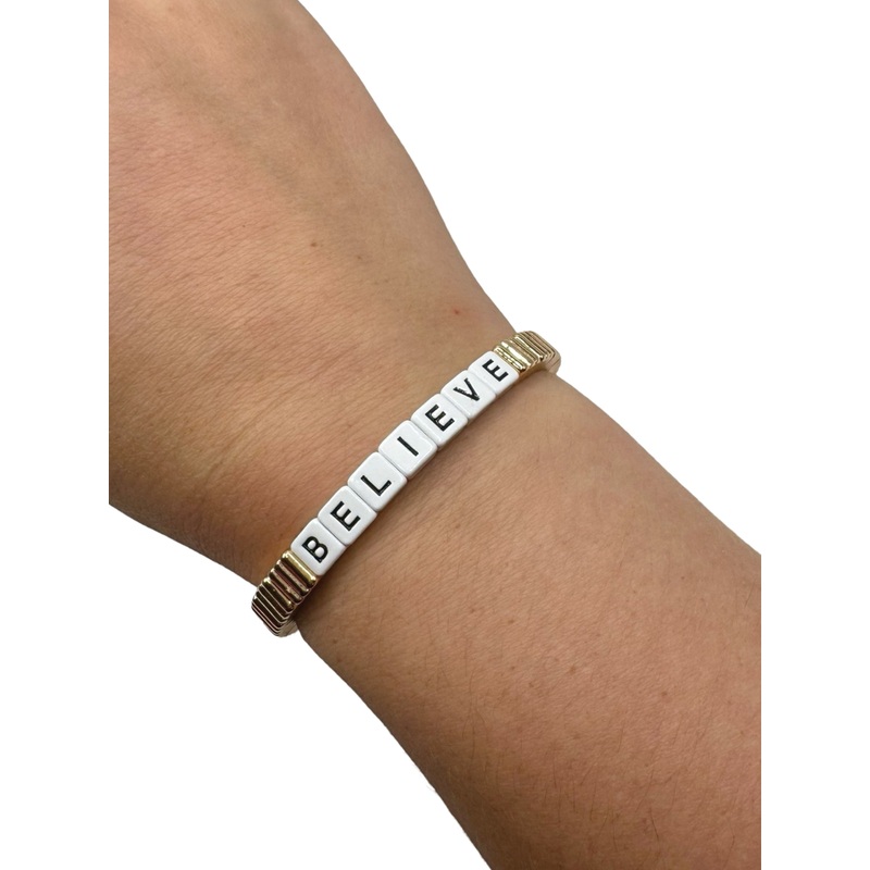 Be the first to review “Bracelet: ‘Believe’ Gold Line”