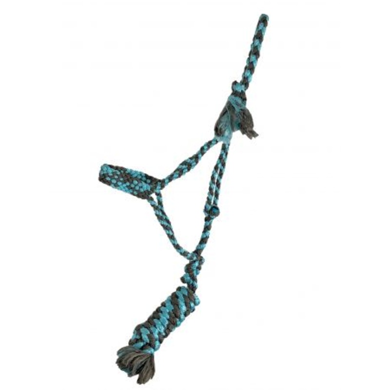 ShowmanBraided Mule Tape Halter. This mule tape style halter features braided brown and light blue with an attached 8' lead.Proposition 65 Warning for California Residents.*Please note each computer monitor will display colors differently.