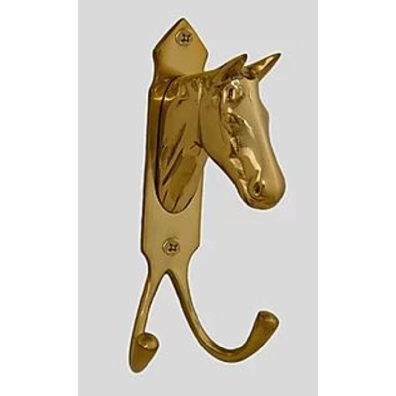 Brass Horsehead Hook with Two Hooks #7105BBeautifulSolid Brass Horse Head with Hook for any tack room, entry way, mud room or stall door. Mounting screws included.Color: BrassSize: Measures 6-1/4 inches high, 1-5/16inches wide, extends 2-7/8 from the wall.