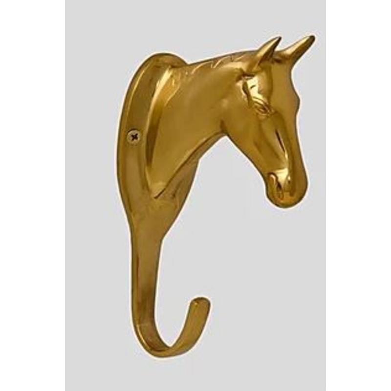 Brass Horsehead Hook #7104BBeautiful Solid Brass Horse Head with Hook for any tack room, entry way, mud room or stall door. Available in a variety of finishes. Mounting screws included.Color: BrassSize: Measures 5.5 inches high, 1-7/8 inches wide, extends