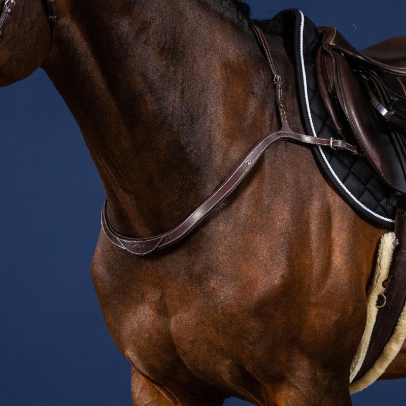Dy’on Breast Collar – from the Dy’on US collection, this innovative breastplate is curved and anatomically shaped for completely unrestricted shoulder movements. Adjustable both over the withers and to the girth, the girth straps have elastic for complete comfort. With silver fittings and fancy cream stitching for a stylish look in the ring.