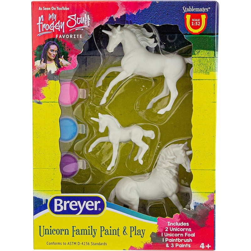 Breyer Horses Stablemate Series Unicorn Family Paint & Play Set #4262 Unicorns come in many different colors, and this exciting activity set lets you decide what those colors can be. The complete set comes with everything you need to create a beautiful uni