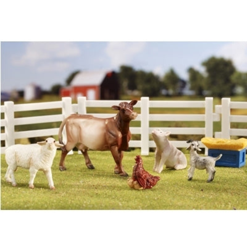 Breyer Stablemate Farmyard Friends Includes a fencing, cow, sheep, pig, goat, chicken and hay manger