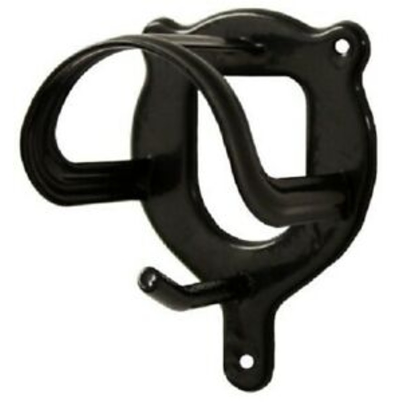 This bridle bracket’s arched design supports leather crowns and prevents unnecessary storage wear by spreading the weight of the items over a larger section than a plain hook does. This simple, classic style tack room bracket includes a plain hook at the bottom so additional items may be stored.