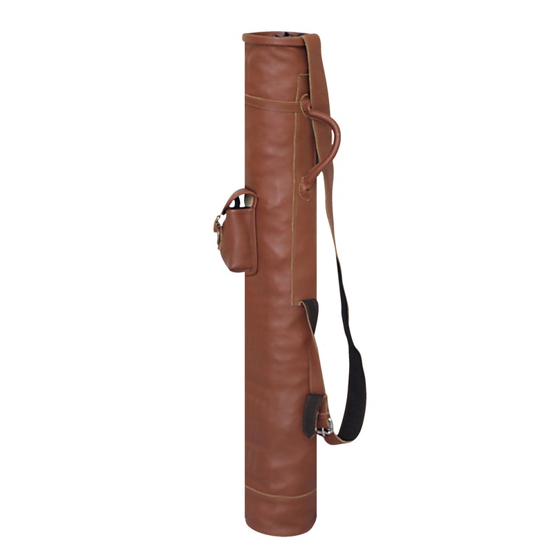 Golf Leather Bag Features:Material: 100% genuine leather and steel ring sewn at the top.Available colors: Tan, Brown.Size:(Wide 5.15"), (Tall 35.50'').1 pocket with buckle closure.Shoulder Strap and Carrying Handle at the top.Capacity:up to 8 clubs.Descrip