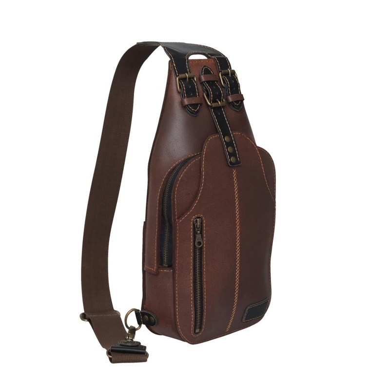 Brown Leather Sling Bag (Features)Materials:ThisLeather Sling Bagis made in 100% genuine leather, with top-quality zippers, and an adjustable strap by our skilled craftsmen.Colors: Available in three colors, Brown, Black, and Cognac.Size: Length: 8.25-inch