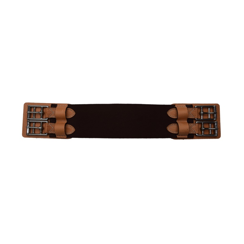 The Butet elastic dressage girth comes with a single elastic strap and four single roller buckles at the ends. The comfort dressage girth is compatible with our mono-flap saddles.