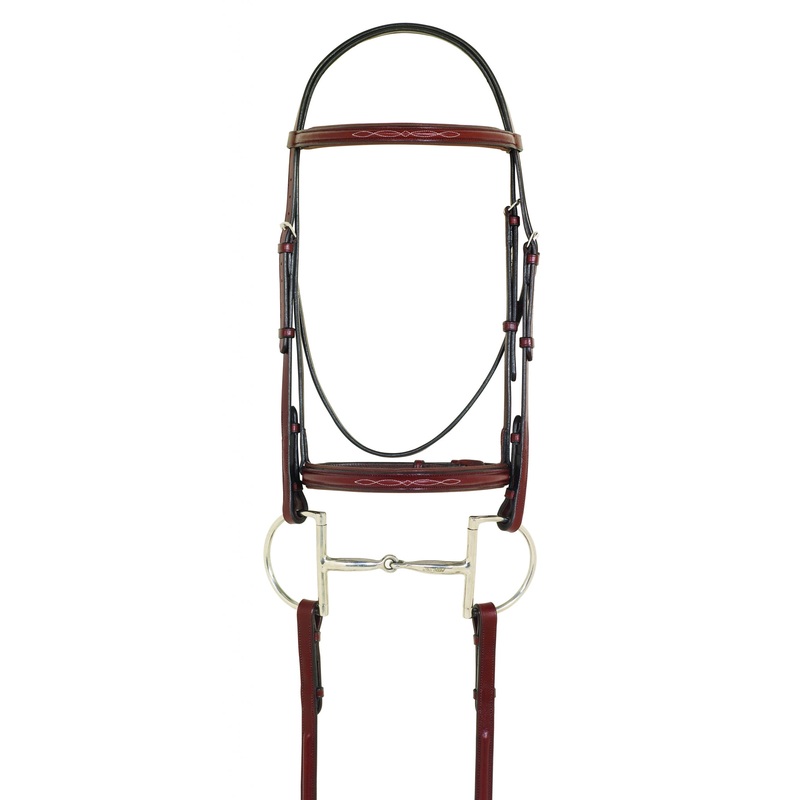 Best value for the money in a fancy stitched padded snaffle bridle. With 5/8″ laced reins Made in durable and long lasting Camelot leather.