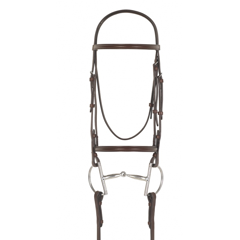 Best value for the money in plain raised snaffle Bridle. With 5/8″ laced reins. Dark stitching.