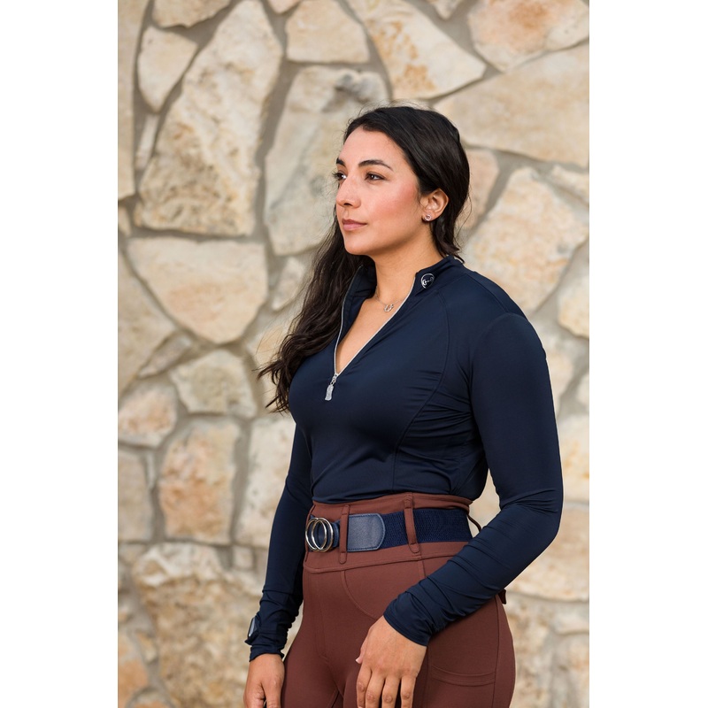 To support the equestrian athlete, it is comfortable, sweat-wicking, antimicrobial, has underarm mesh panels, and a UPF 30 rating so you can focus on your ride without worrying about harmful UV rays.