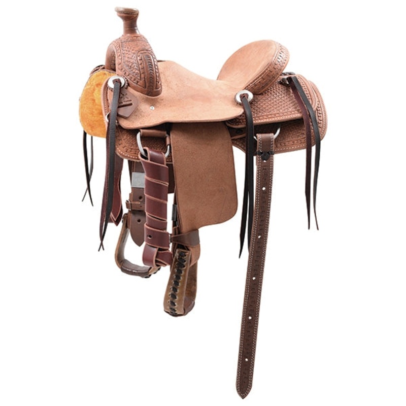 The great features of blocked fenders, wide secure horn and seat design are designed to help the young rider stay balanced on their horse while learning to throw their rope. The Cowboy Kids saddles can fit a wide range of riders by adjusting stirrups and adding a seat shrinker. They are tailored for riders wearing western jeans in sizes 4 through 14 regular.