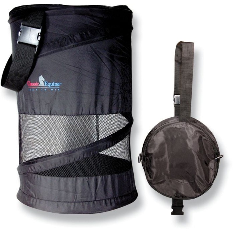 The Classic Equine Laundry Bag is a lightweight portable laundry bag for blankets saddle pads or wraps. PVC mesh around mid-section allows moisture to escape. Nylon strap and zip top for comfortable convenient use. Size: 18.5" diameter x 26.5" tall