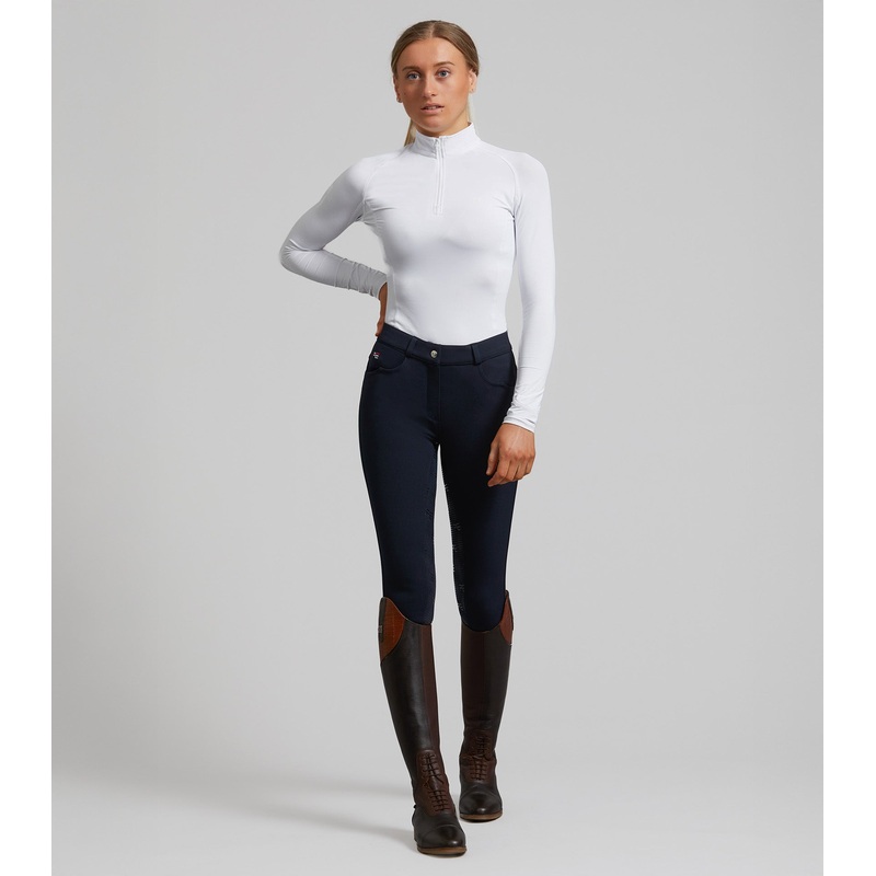 Crafted from four-way stretch fabrics offering complete flexibility for unrestricted performance.A full seat of branded silicone increases grip in the saddle and adds an element of further technical performance to the breech. Designed with two front pockets which add practicality, with a unique curved edge design for a subtleabstract touch. The standard-rise waist delivers a flattering fit and is completed with five traditional belt loops so you can include your favourite belt.