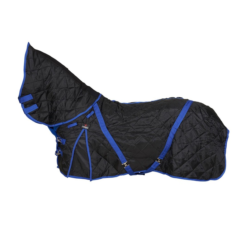 The Catago Stable with Neck 300g in Black with stylish Royal Blue trim will keep your horse cosy in his stable this winter.