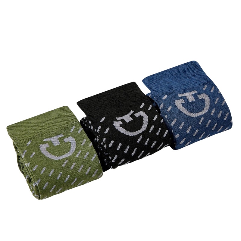 Attention to detail and the use of high-quality materials and manufacturing methods embody the values of Cavalleria Toscana heritage. Complete your riding wardrobe with these ergonomic socks, which adapt to the shape of the foot. In ultra-breathable fabric, theyre also hypoallergenic and antibacterial. The set features three pairs of socks in different colours, all featuring a graphic inlay and CT logo on the calf.