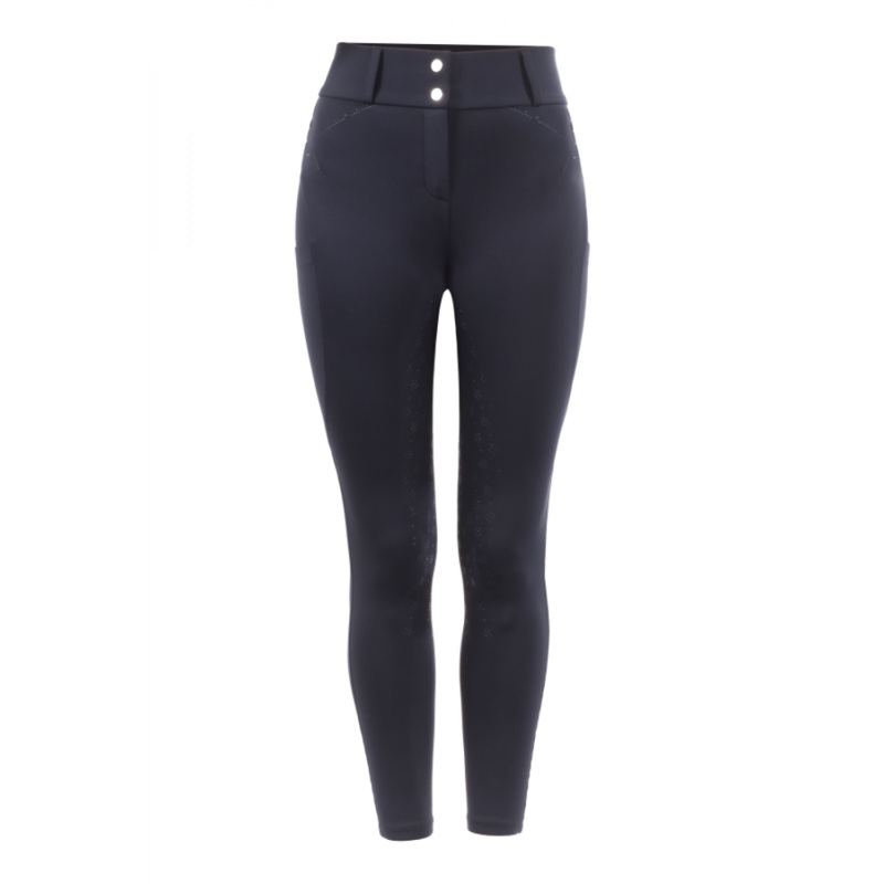Comfortable riding leggings with the look of classic breeches, provided with sparkling details.Mobile phone pockets with fine Cavallo embroidery inserted into the seams on the sides of both thighs.Back yoke with two flaps decorated with embroidery and rhin