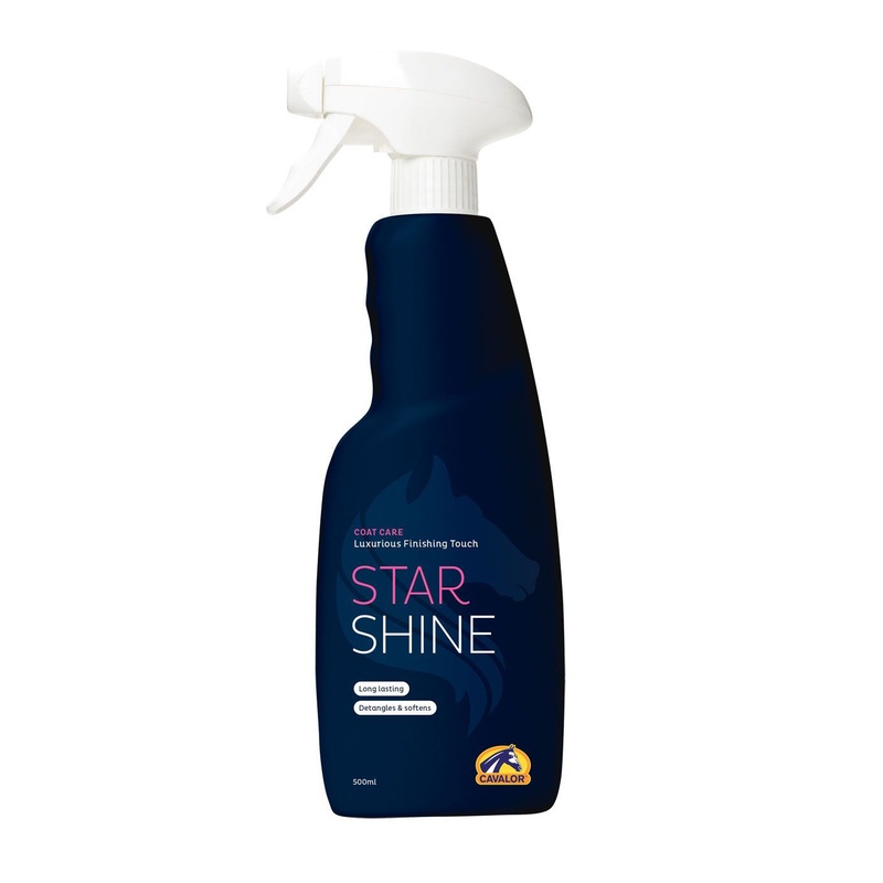 Cavalor Star Shineis a long-lasting hair conditioner with a unique and pleasant aroma, for use on the horse’s coat, and mane and tail.Itgives a brightening gleam to your horse’s coat to make him appear a real ‘star’ on the show circuit. The horse’s mane and tail can be expected to remain tangle-free for a week.