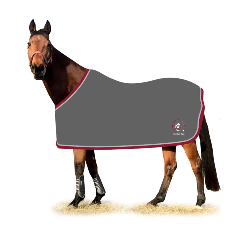 Features:Made from premium Melton woolHigh quality leather front closureRemovable belly surcingleCharcoal base, metallic silver piping, burgundy binding