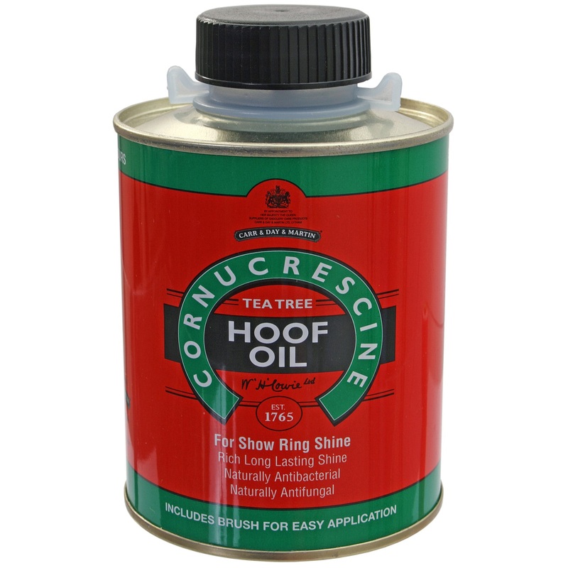 A translucent oil that contains Tea Tree oil which is ideal for its antibacterial and anti-fungal properties.Gives an ultimate shine on all hoof colours.Application brush inside.Sizes: 500ml