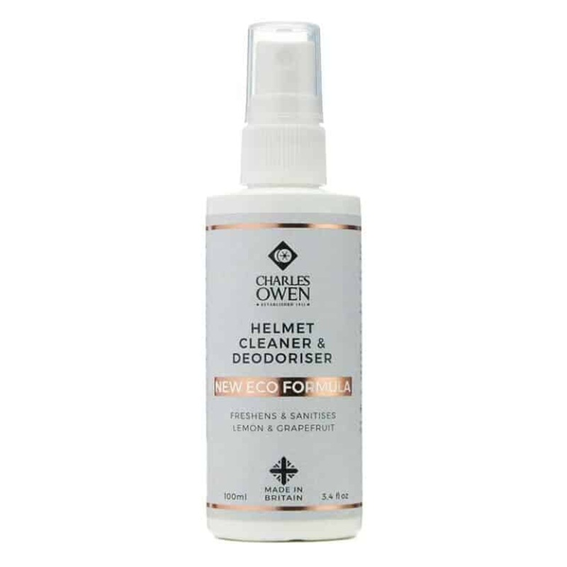 Charles Owen Eco-Friendly Helmet Cleaner & Deodoriser Freshness in Every SprayIntroducing the new eco-friendly formula from Charles Owen, now combining helmet cleaner and deodoriser into a single, convenient pump-action spray.This specially formulated solu