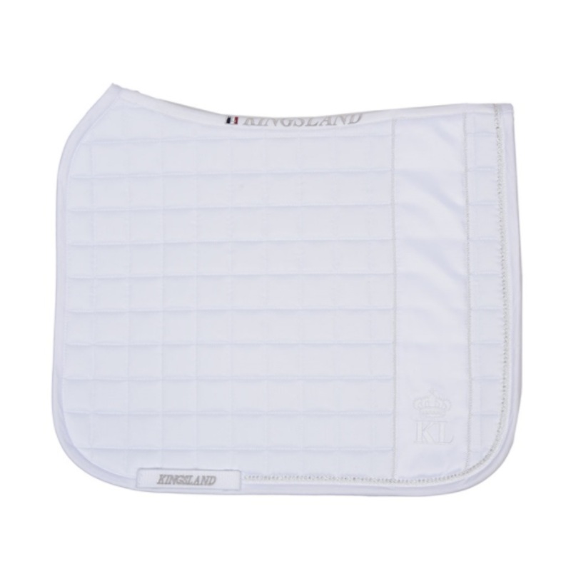 Kingsland Classic Dressage Saddle Pad Sparkling - an elegant twist on the classic dressage pad by Kingsland. The saddle cloth has the little extra that makes it an eyecatcher at any show. The tone-in-tone logo is very classic but with the satin stripe it h