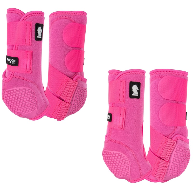 Classic Equine Flexion by Legacy Front and Hind Boots Combo Pack- Hot PinkFlexion technology provides individual abrasive resistant cells on the fetlock cradle system with impact and wear protection never before seen in the equine leg protection space. Eac