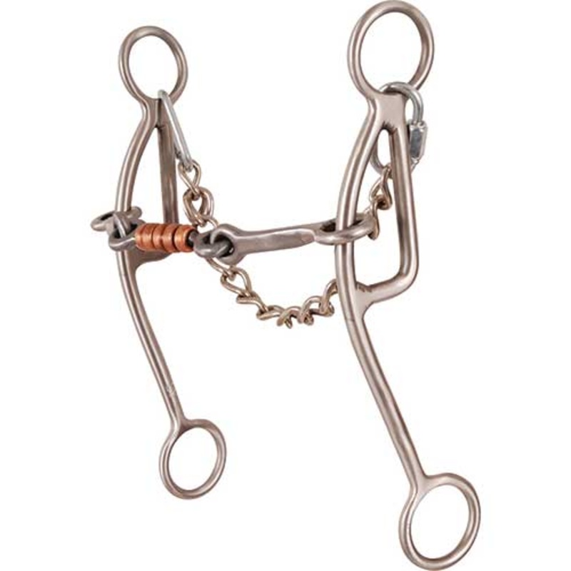 Classic Equine LV Shank Dog Bone Gag BitMouth 5 1/2"Purchase 3"Shank length: 7"Medium-High Lift LeverageDog Bone MouthCopper RollersThe dog bone gag bit in the Les Vogt collection from Classic Equine is said to have unlimited gag slid action and gives lots