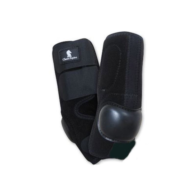 Clean, close, flexible fit for protection and comfort. Asymmetrical skid cup protects your horse in the areas he needs it most. Interior no-turn rolls ensure proper fit and prevent shifting. Smooth textured Neolite skid cup is extremely abrasion-resistant and remains durable in harsh ground conditions. Simple and safe closure system for easy on and off application.