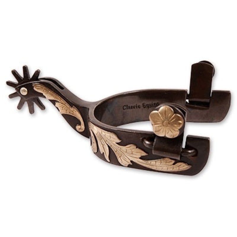 The Classic Equine Reiner Spur is made with greyed iron and raised reining style shank for easy contact and discreet cues. 1" band is weighted to stay down on the heel.