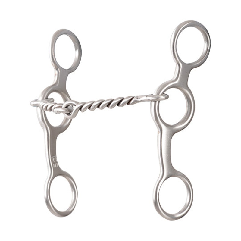 Classic Equine Twisted Junior Cowhorse BitMouth Piece: 5 1/2"Shank: 5 1/2"Ring gag with an inlaid copper twisted wire snaffle mouthpiece. The gag action encourages the horse to respond before the bit is completely engaged. Gags are commonly used in trainin