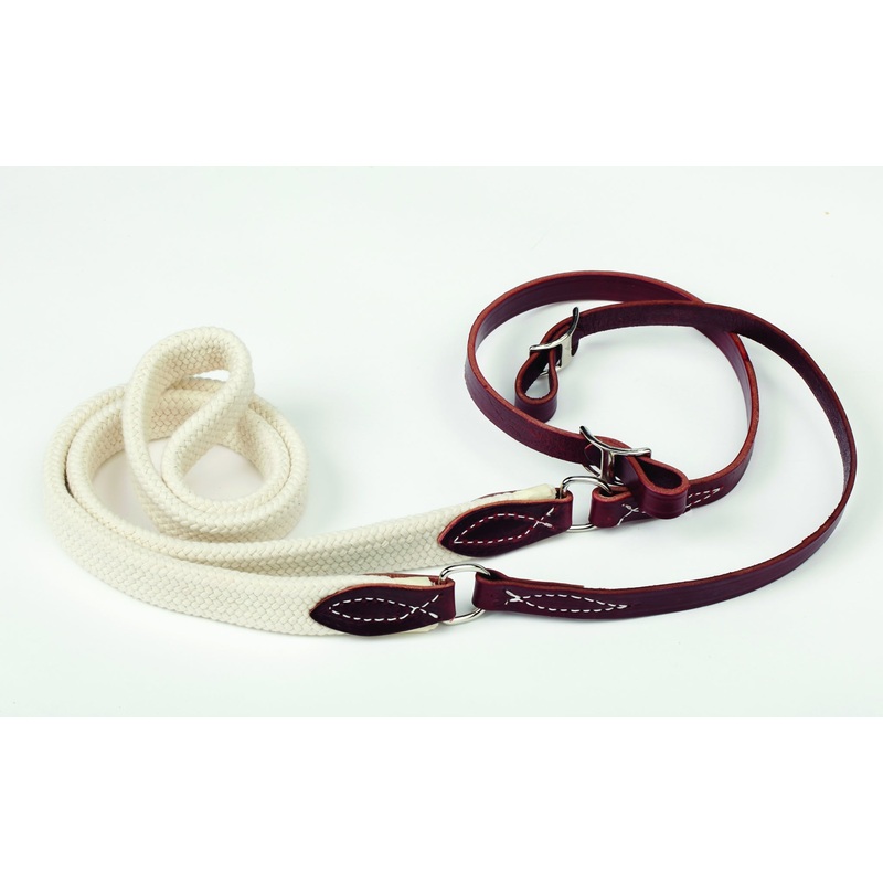 The Colorado Saddlery Braided Cotton Center Latigo Roper And Contest Rein is an 8' x 5/8" center braided rope and latigo rein. The center is a waxed rope for a better grip and feel. This is a nice rein for a great price! Made in USA.Size:8 ft.