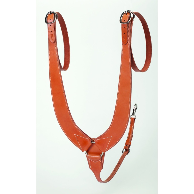 The Colorado Saddlery Buckaroo Mule Pulling Breast Collar is the breast collar everyone has been asking for. It fits the natural curve of the Mule's shoulder. The tug straps loop through the gullet of the saddle and then buckle back to the collar. Heavy, d