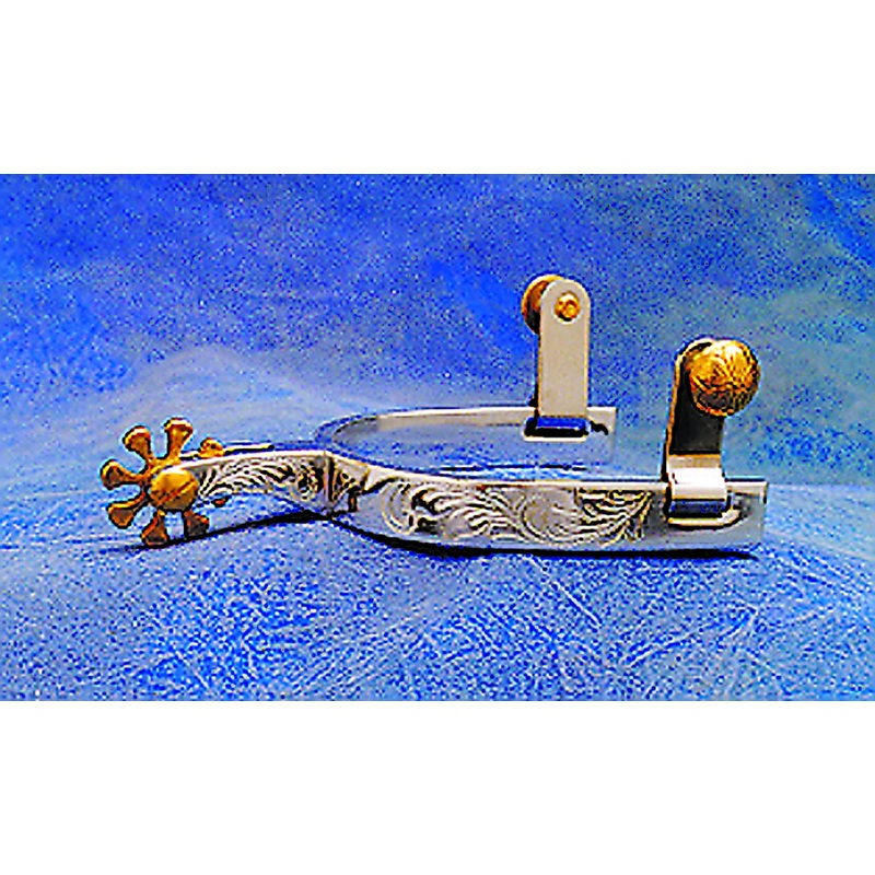 The Colorado Saddlery Louisiana Roper Spurs are a hand engraved, aluminum spur with swinging buttons. Features include a 5/8" band, 1 1/2" shank and 1 1/4" eight point, horseshoe nail style rowels. This is a great all around using spur that rides well on t