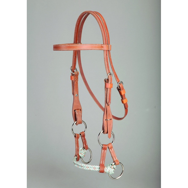 The Colorado Saddlery Quick Change Side Pull Noseband Headstall is a great looking skirting headstall with quick change bit ends and a detachable sidepull noseband.