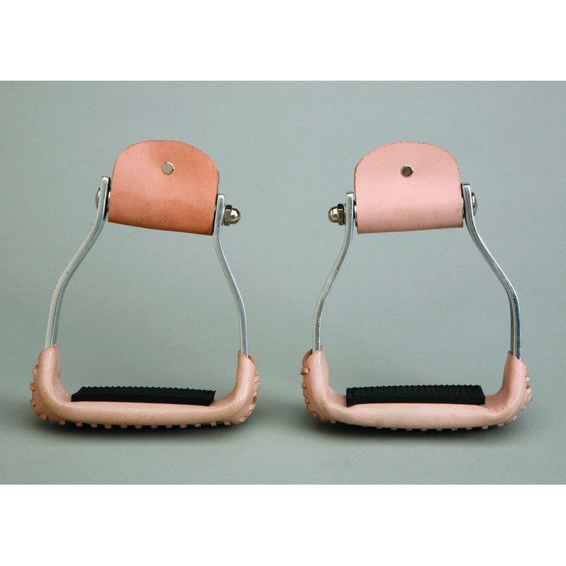 The Colorado Saddlery Slanted Aluminum Visalia Stirrups are great new aluminum stirrups that have a slanted bolt so that the stirrups stay flatter and make riding more comfortable. Rubber none slip foot pad. 3" neck, 2 1/2" tread.Size:2 1/2