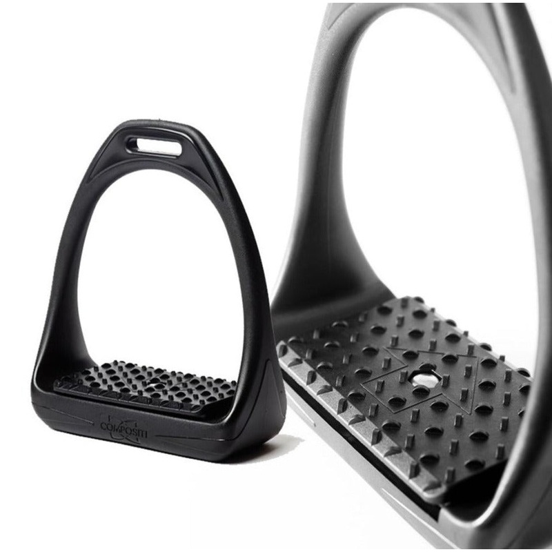 These stirrups are made from one of the toughest high-tech polymers produced by DuPont.The tread is positioned on a shock absorption layer to reduce tension in knees and ankles while riding. The large sole provides increased contact and comfort, and has an