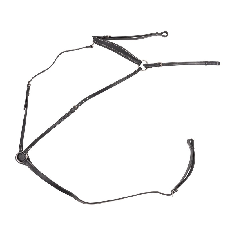 The Connemara Adjustable breastplate is made from high quality leather featuring raised leather accents with elegant white stitching. Completely adjustable for a perfect fit, this breastplate is ideal for both schooling at home and the show ring.Made from