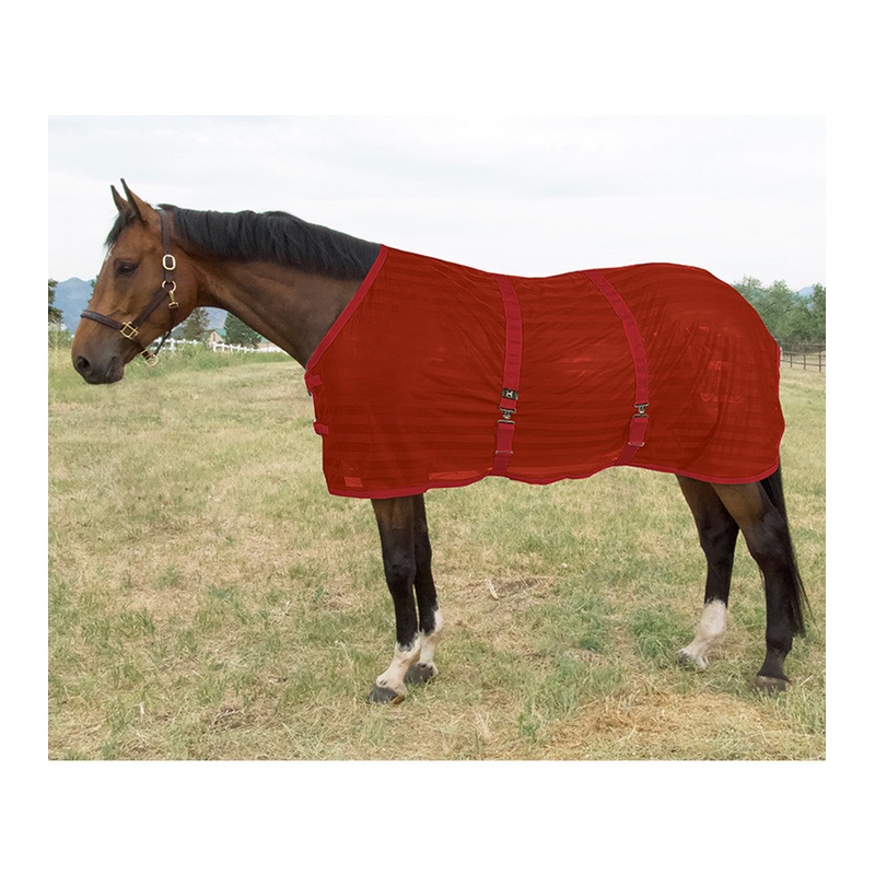 This lightweight 100% polyester Cool Mesh Fly Sheet features new design with sleek, ribbed look. Open front style with two outside surcingles for secure and comfortable fit. NOT RECOMMENDED OR DESIGNED FOR TURN OUT.** RED BODY COLOR ONLY **THIS ITEM IS BEI