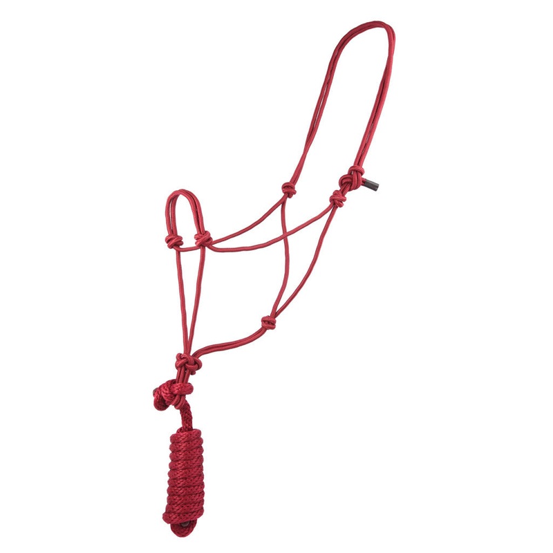 Coolhorse Burgundy Knotted Poly Rope Halter- 8' LeadMaterial: Poly rope with knotted designAttachment: TieLead Rope Length: 8"Color: BurgundyRecommended Use: Training, groundwork, leading, and handlingCare Instructions: Spot clean as needed and hang to dry