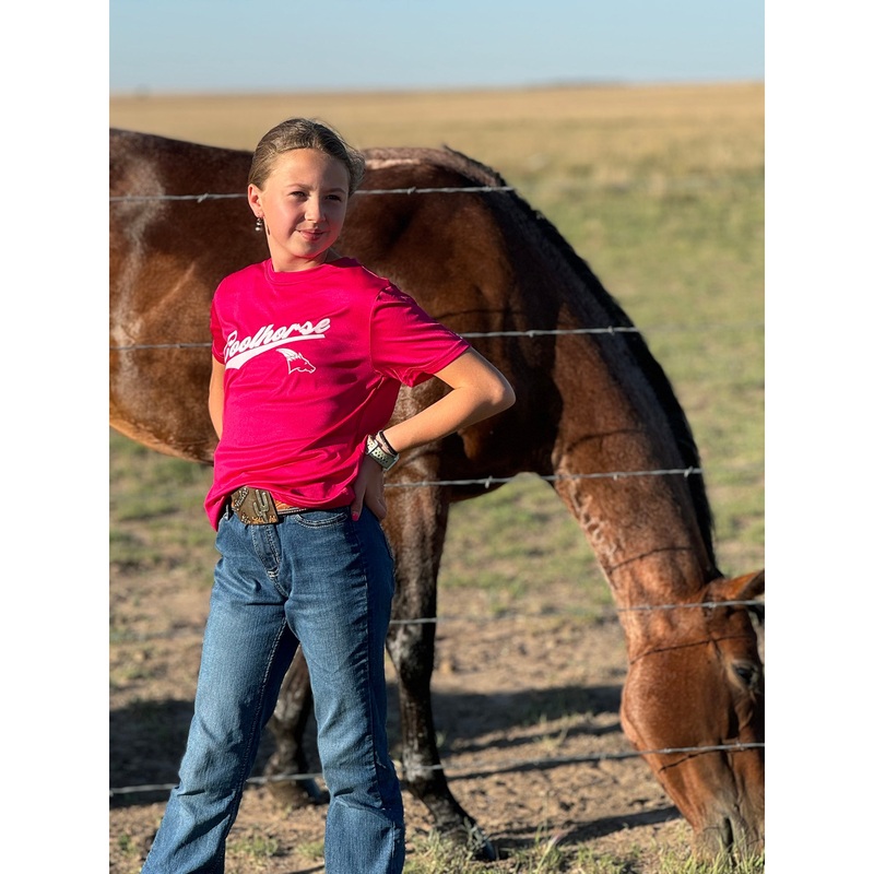 The Coolhorse Youth Raspberry Dri-Fit Short Sleeve T-Shirt is a perfect blend of style and performance. Whether for active days at the barn, riding, or hanging out with friends, this T-shirt keeps young riders comfortable while showing off their passion for horses and the Western lifestyle.