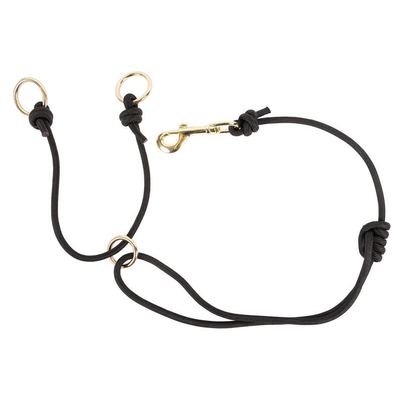 Training fork crafted from 5/16 round braided poly complete with brass plated hardware. Complete with swivel snap hook for easy attachment to your horses cinch.5/16 round braided polySliding knot for adjustabilitySwivel snap hook conveniently attaches to c