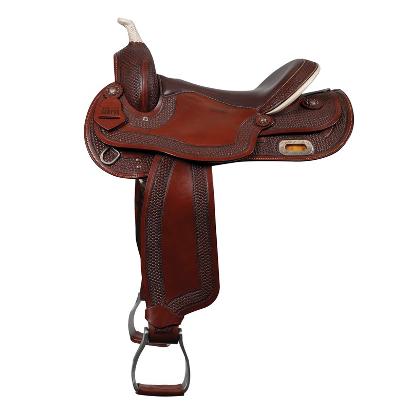 Exceptional all-around leather saddle, thoughtfully created for training, ranch work and designed to offer all day comfort to both horse and rider. Cut back and gently rounded skirt wont impede hip movement of the horse and full QH bars offer a great fit o