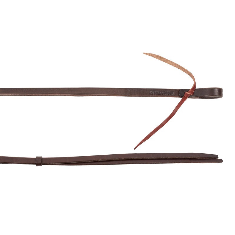 Leather reins crafted with durable Hermann Oak Harness Leather oiled and waxed by hand for a beautiful supple feel. Attaches to bit with tie ends for a traditional look.