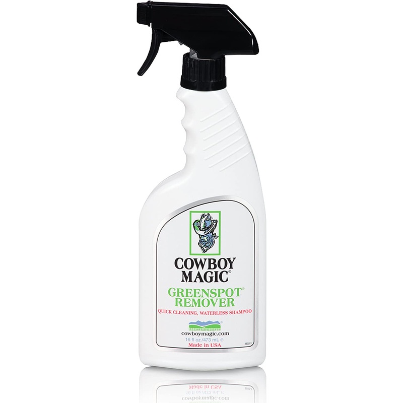 Too late for a bath!? Cowboy Magic Greenspot dissolves show ring dirt, manure stains, dried sweat and other organic matter instantly. Used by Show Champions, Riders, Campers, Hunters and Fishermen when its sweaty, smelly, hot or there's no time or water fo