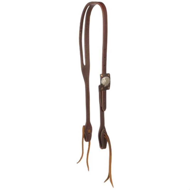 Cowperson Tack 5/8″ Harness Leather Slit Ear Headstall with Square Indian Head Concho