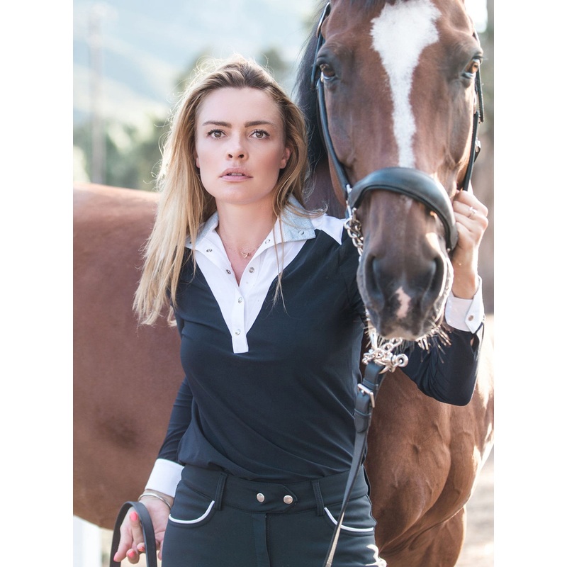 Made for comfort in all seasons, the Confident in Black Amelie is a competition top you’ll rely on time and again. The timeless design transcends equestrian disciplines, while its practicality ensures you stay focused on delivering your best performance.