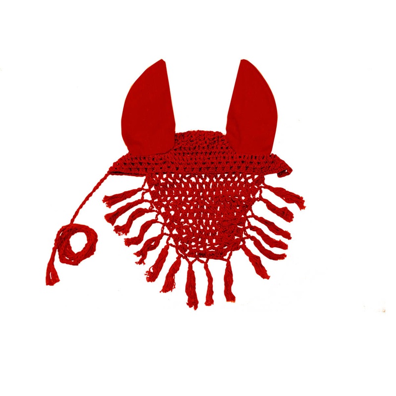 Derby Originals Crochet Horse Fly Veil Ear Bonnet with Fringe has been designed to not only help your horse look great, but to keep them more comfortable and focused when under saddle. Our ear nets provide a barrier between your horses ears and the outside world, which helps to muffle loud sounds to keep your horse calm and focused during competitions and events. Our bonnets also help protect against insect bites, sunburn, frostbite, dirt, debris, and more. This ear bonnet is made of soft woven cotton to promote optimum comfort. Cotton is breathable and gentle against your horses delicate skin, making it comfortable to wear any time of year.