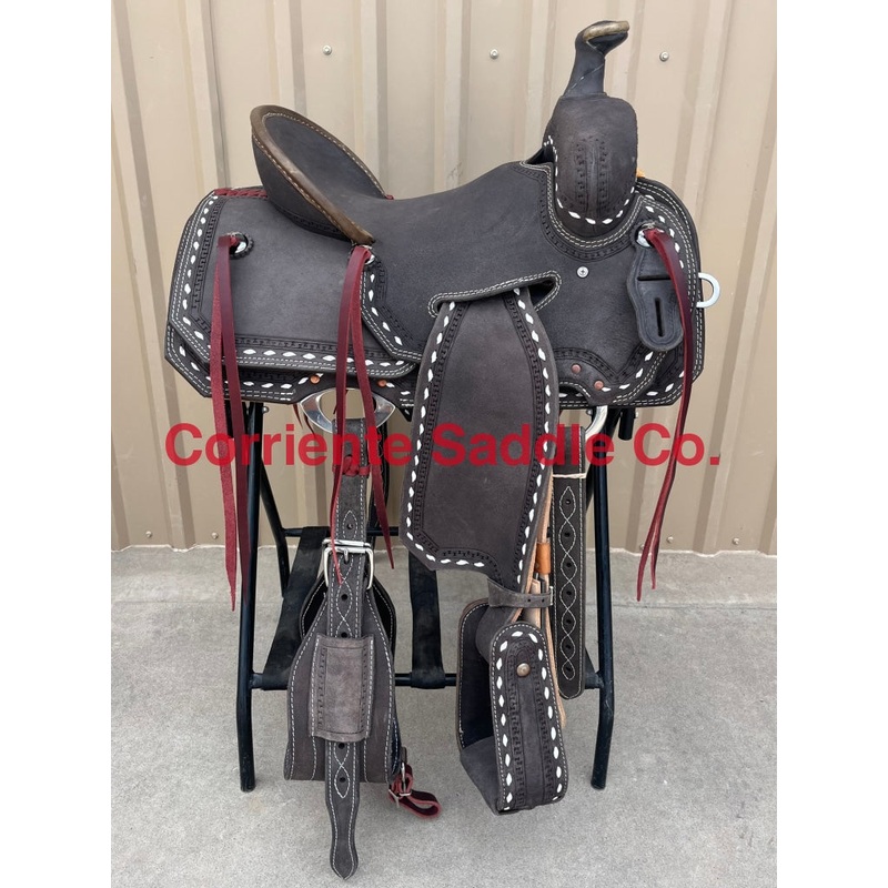 Real Wool Sheepskin LiningAvailable on All Saddle-$150Association Tree**CHOCOLATE LEATHER**WHITE BUCKSTICH ALL AROUND SADDLEIn-Seat Rig On Association TreeTraditional SkirtingRigging in Seat JockeyFenders Coming Through Seat JockeyFull RoughoutNo ToolingRunning WTrim All Around Saddle45 SkirtingRing in FrontFancy Dee in BackStainless SteelHardwareNo CutoutsHard Seat