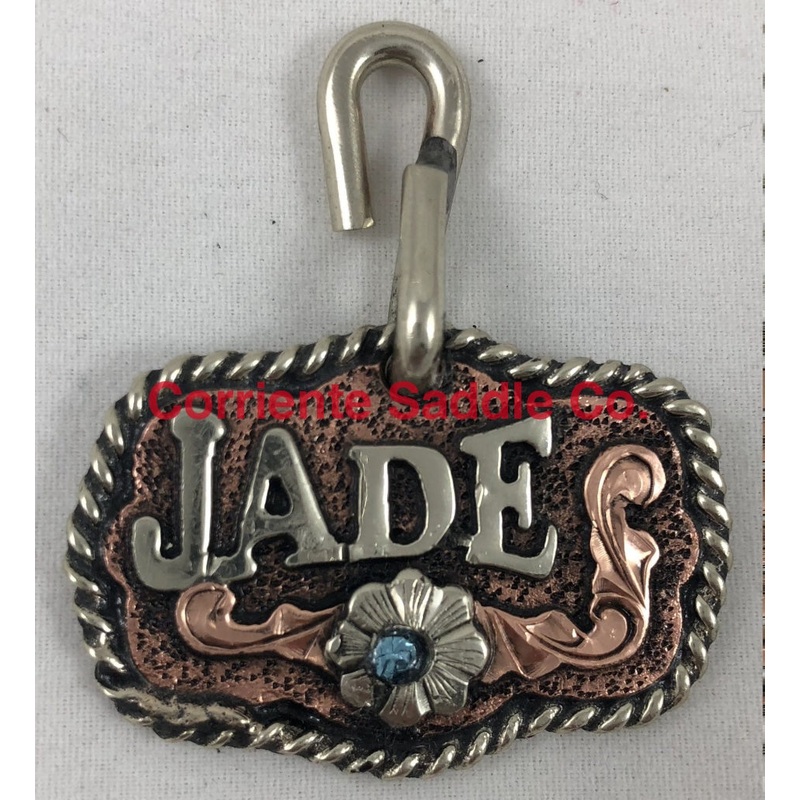 To Order Please Call Us At 915-525-9009Customized Hand Engraved Dog TagCustomized with your dogs name in frontAdd your name and phone number on the backThesemeasure 1.5" inch wide and 1" inch tallCopperBackgroundCopper FiligreeSilver LettersPick The Stone