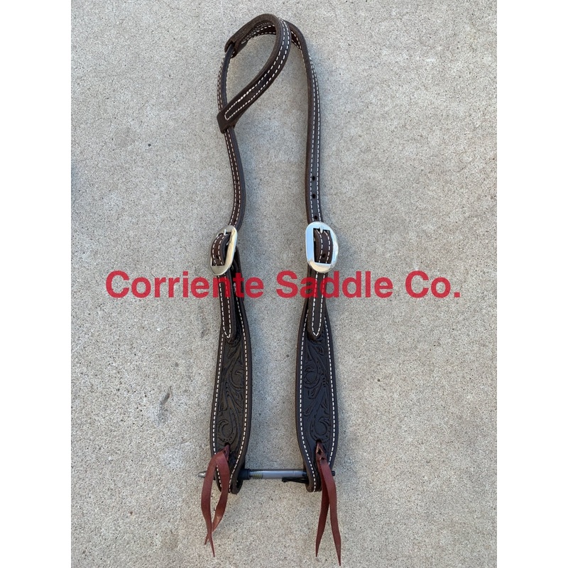 One Eared Chocolate Leather Headstall WithBeautiful Design and Nice BucklesFloral ToolingChoose A Headstallto Match Your SaddleLettering Can be Added for $10